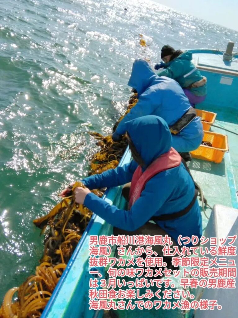 お食事処としまです。3月1日より新しい季節限定メニューが仲間入り。男鹿市船川海風丸さんから仕入れる早採りワカメを使った、ワカメラーメン、ワカメ掛け丼、それらを合わせた旬の味ワカメセットを販売します。地産地食をもじり男鹿産秋田食として3月いっぱい予定してますので、お楽しみください。